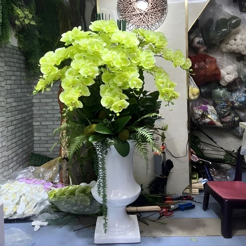 Lan hồ điệp mini xanh lá cây mang sắc thái nhẹ nhàng gợi lên sự tươi mới và bình an. Tông xanh thanh mát giúp tạo cảm giác thoải mái, cân bằng năng lượng trong phòng làm việc hoặc không gian sống.