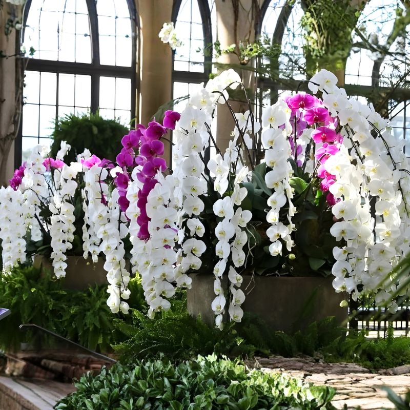 Lan hồ điệp siêu dài màu trắng nổi bật với vẻ đẹp thanh khiết và đầy cuốn hút. Những cành hoa vươn dài, sai nụ được xem như biểu tượng của sự phát triển và tài lộc dồi dào.