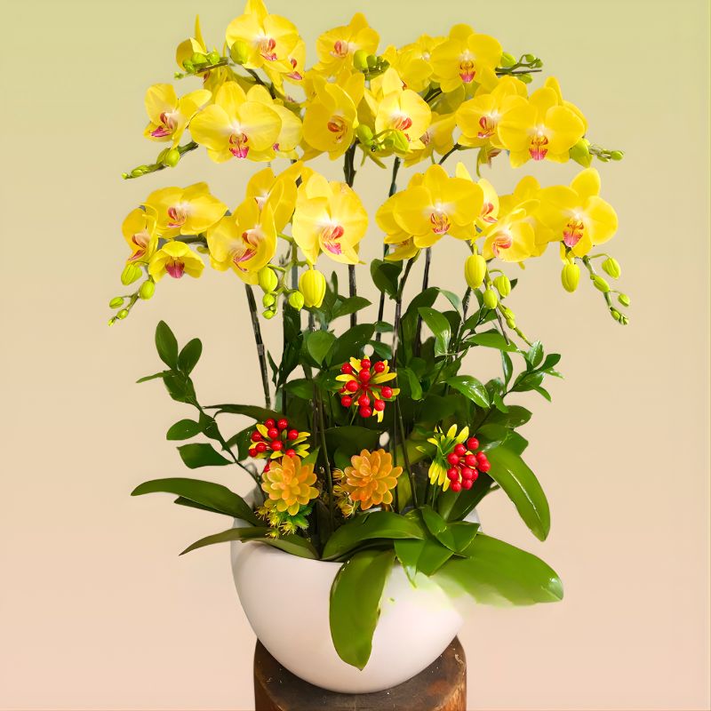 Không chỉ phù hợp để trưng bày, chậu lan hồ điệp vàng lưỡi đỏ còn là món quà dễ tạo thiện cảm trong các dịp khai trương, sinh nhật hay chúc mừng. Khi đặt đúng không gian, chậu lan sẽ phát huy rõ giá trị thẩm mỹ và tạo cảm giác tươi sáng hơn cho tổng thể. Bạn có thể tham khảo thêm các mẫu chậu hồ điệp vàng lưỡi đỏ tại Siêu Thị Hoa Lan để chọn sản phẩm phù hợp với nhu cầu thực tế!